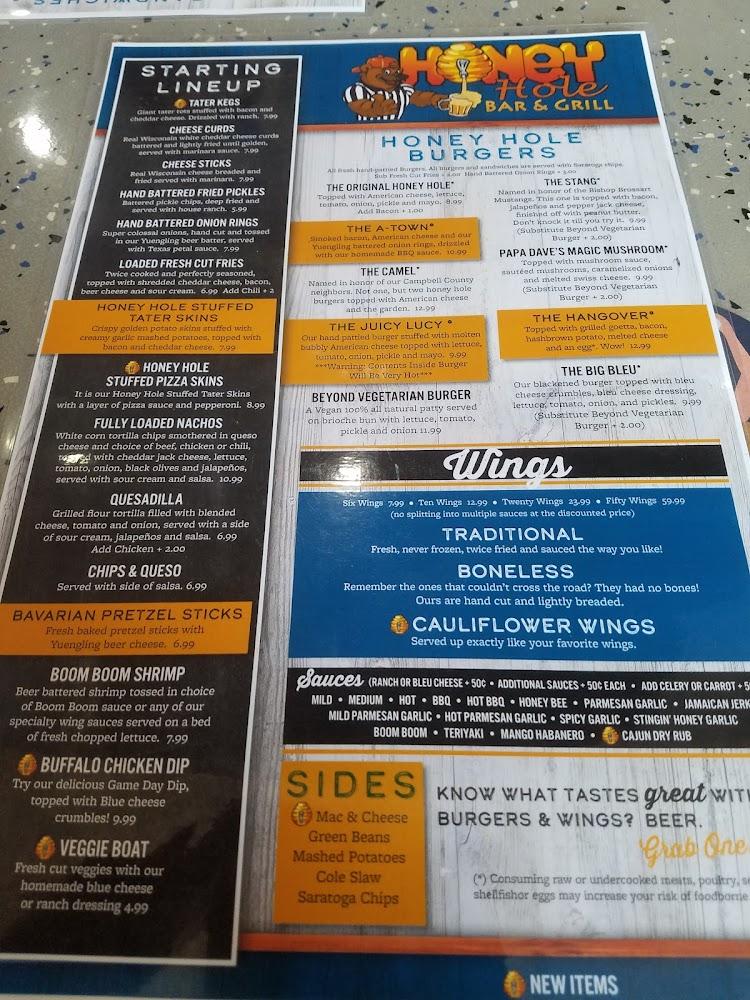 Welcome to Honey Hole Bar & Grill, your go-to mom and pop restaurant in Alexandria, KY! We pride ourselves on serving fresh, delicious food in a family-friendly, non-smoking environment. Known for our mouthwatering wings and crafted burgers, we offer daily lunch and dinner specials to satisfy all cravings. Enjoy our sports bar vibe with a full bar, while our lower level features private party space, three pool tables, and arcade games. Whether you're dining solo or with family, Honey Hole is the perfect spot for casual dining and fun. Visit us today at 7501 Alexandria Pike!